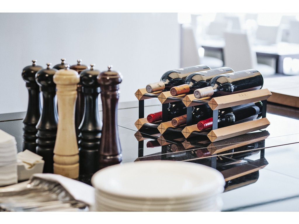 RAXI Classix 3009X je malý stojan na víno určený pro uložení 9 lahví. Profesionální hloubka 300 mm zajišťuje, že každá láhev má své vlastní samostatné místo, je stabilně uložena a nedotýká se ostatních lahví.
