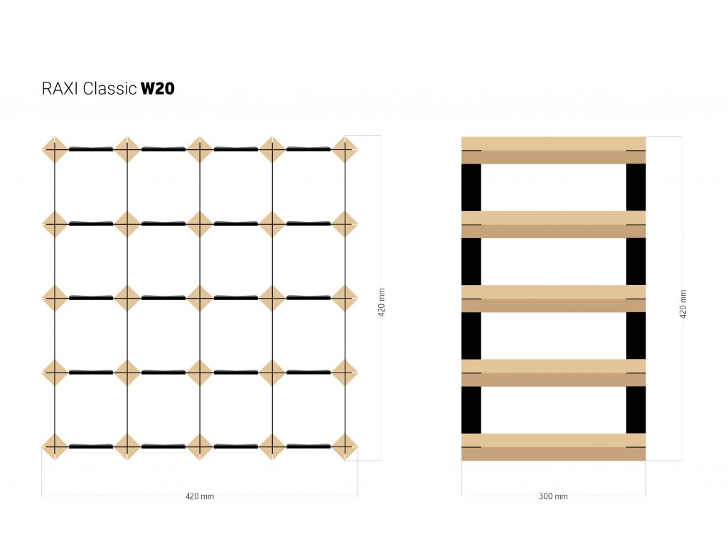 Systém RAXI patří mezi často napodobovaná řešení v oblasti stojanů na víno. Jednotná hloubka 300 mm, pevná konstrukce a možnost zakázkové výroby jsou charakteristickými znaky originálního systému RAXI.