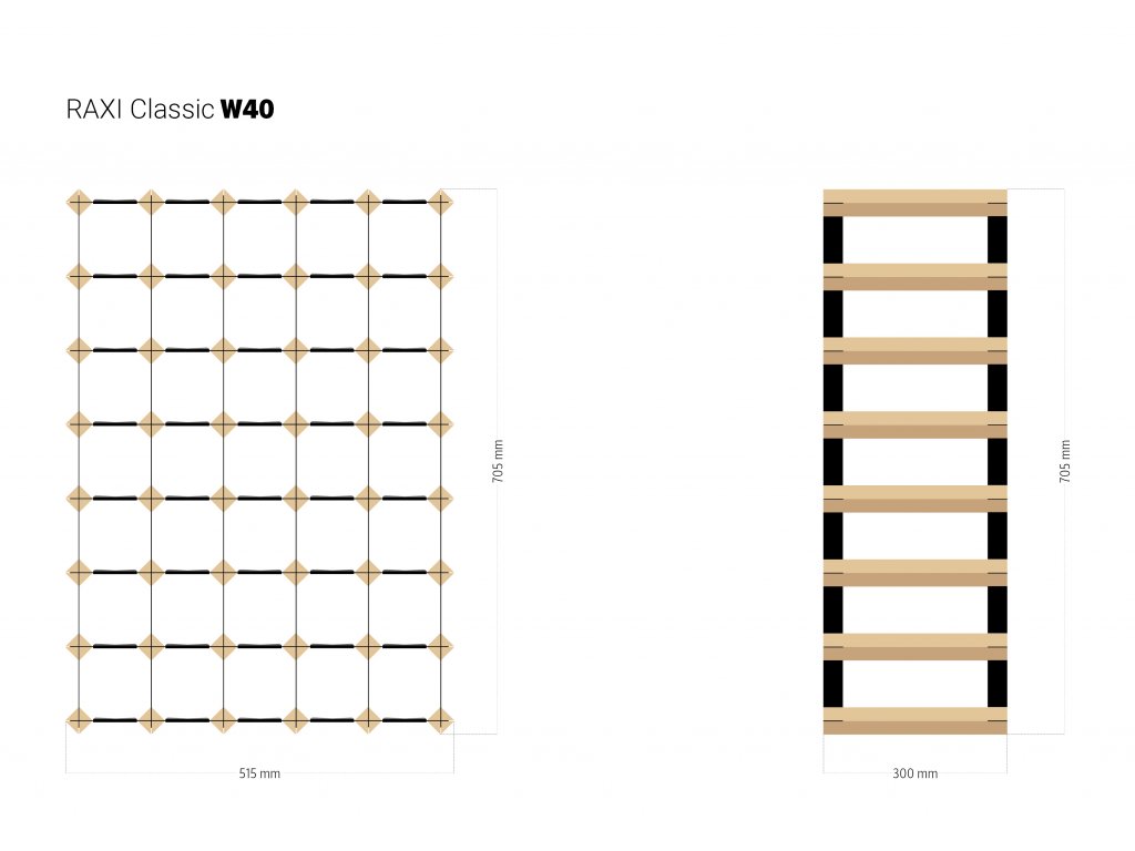 RAXI Classix 3040E je stojan na víno z masivního dubového dřeva s kapacitou 40 lahví, navržený pro přehledné uložení větší sbírky vín v jednom kompaktním celku. Profesionální hloubka 300 mm zajišťuje stabilní uložení každé lahve ve vlastní pozici, bez vzájemného dotyku a s dostatečným prostorem pro manipulaci.