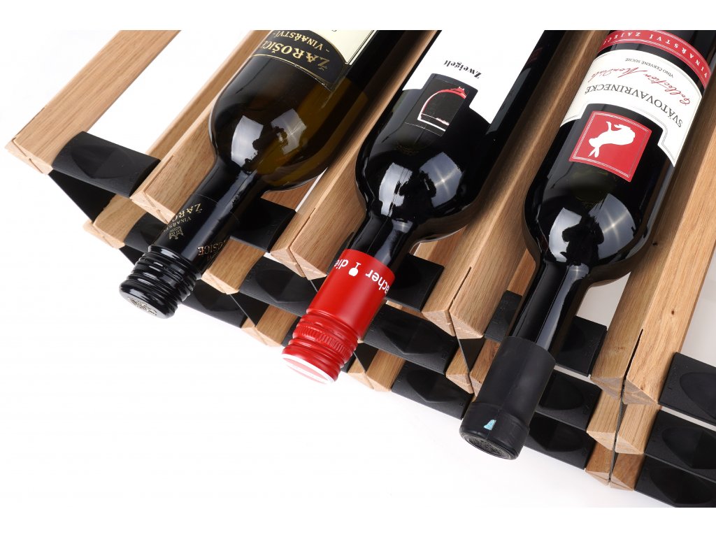 RAXI Classix 3012E je malý stojan na víno z masivního dubového dřeva, určený pro uložení 9 lahví. Profesionální hloubka 300 mm zajišťuje, že každá láhev má své vlastní samostatné místo, je stabilně uložena a nedotýká se ostatních lahví.