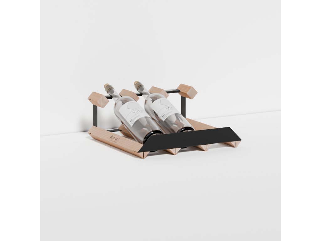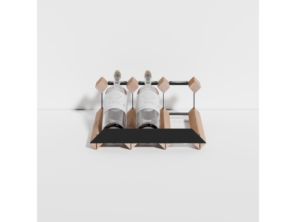 Lahve jsou uloženy v mírně nakloněné poloze, která zajišťuje dobrou čitelnost vinět a stabilní uložení. Kompaktní provedení umožňuje snadné začlenění stojanu do prodejního nebo gastro prostředí bez zbytečných nároků na prostor.